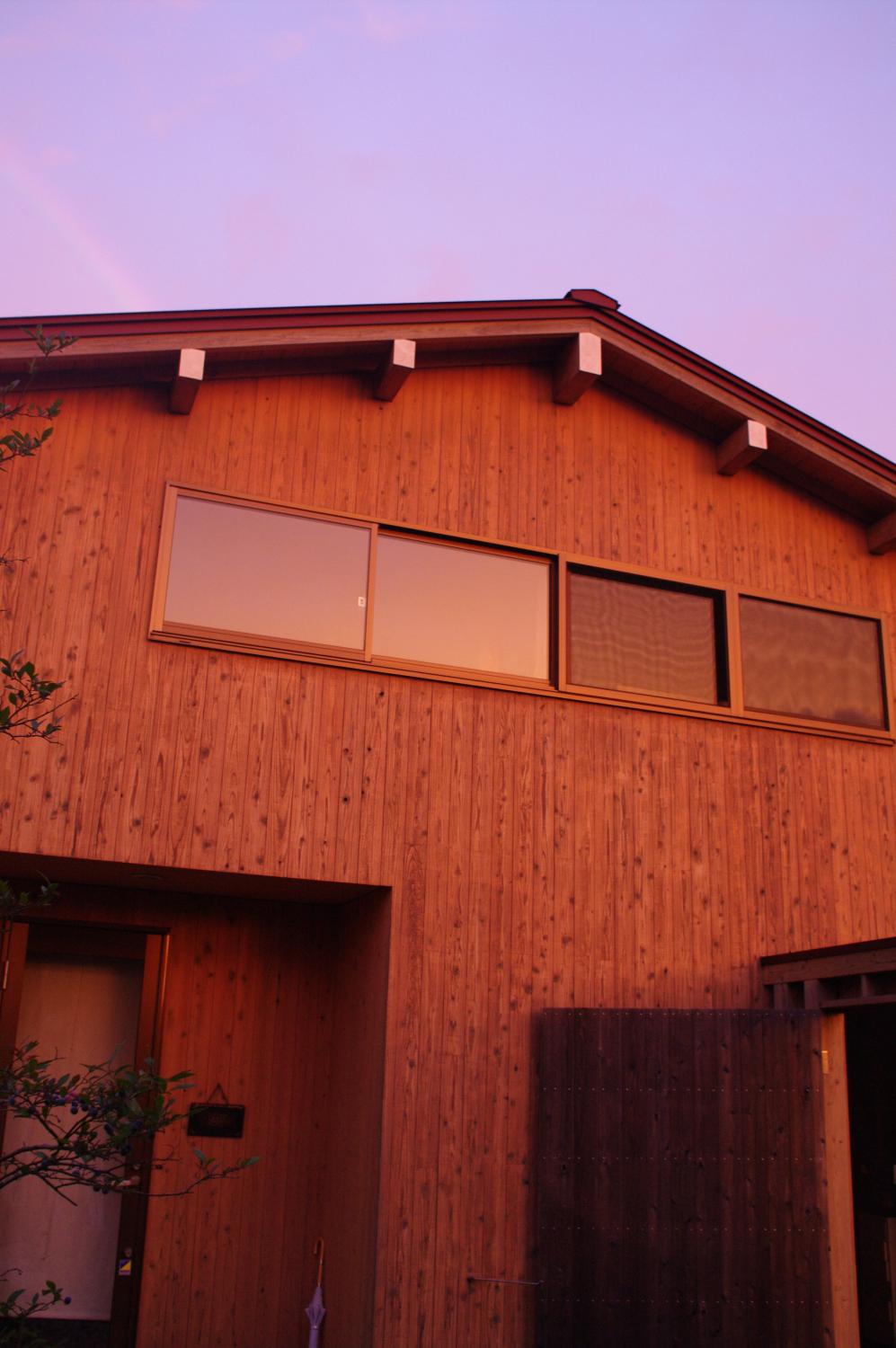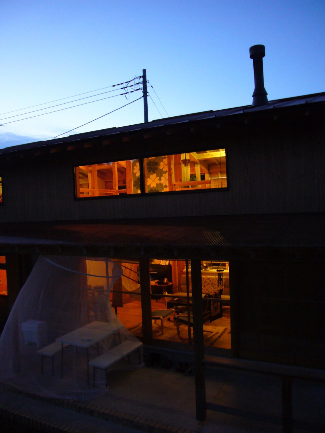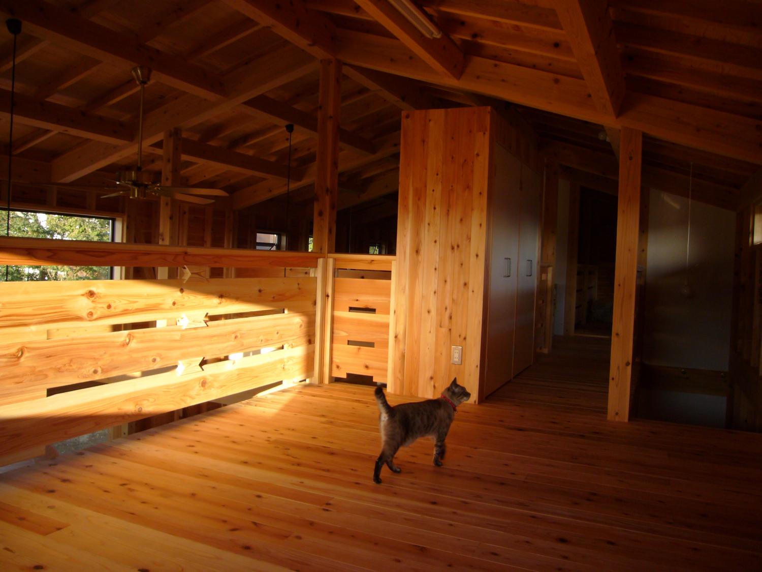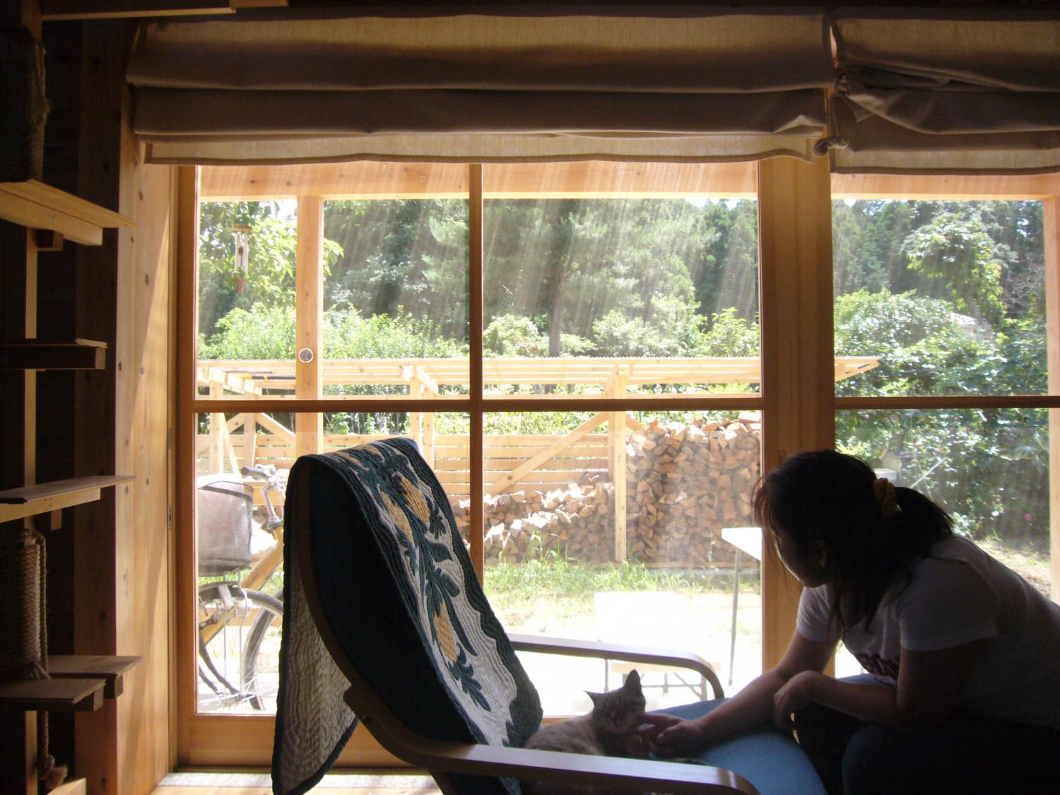 敷地は東海村郊外の小高い丘の上、周辺には雑木林が残る場所です。一年中陽当りが良く、夏には東に広がる水田から冷気を乗せた風が家の中を気持ちよく吹きぬけていきます。差し込む朝日に季節の移り変わりを感じ、夜、吹き抜けの窓を見上げると月が横切っていきます。日常の中にハッとする瞬間があり、ここに居るだけで幸せと感じられる家になりました。家の暖房には薪ストーブを使用しています。