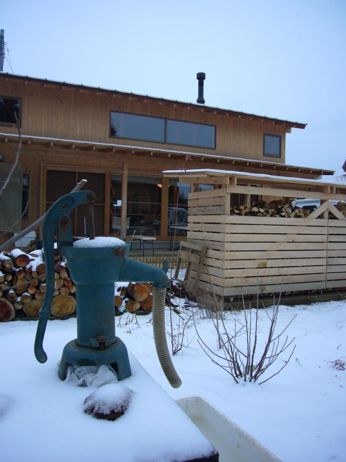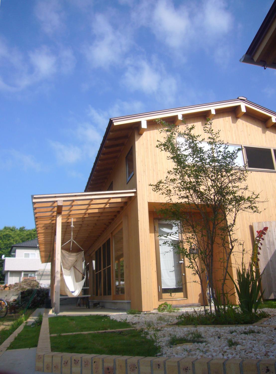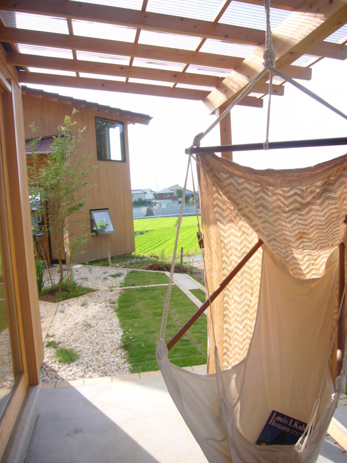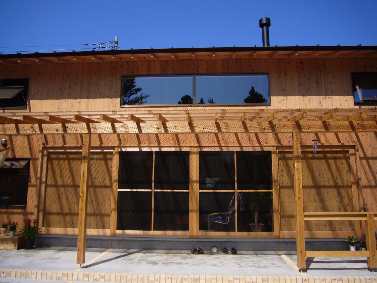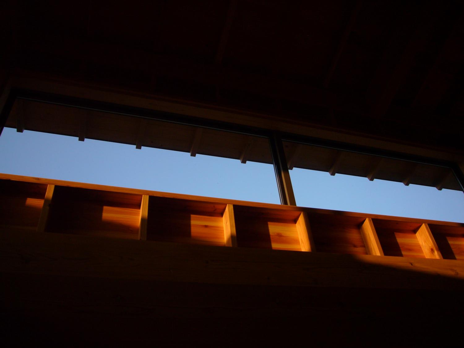 敷地は東海村郊外の小高い丘の上、周辺には雑木林が残る場所です。一年中陽当りが良く、夏には東に広がる水田から冷気を乗せた風が家の中を気持ちよく吹きぬけていきます。差し込む朝日に季節の移り変わりを感じ、夜、吹き抜けの窓を見上げると月が横切っていきます。日常の中にハッとする瞬間があり、ここに居るだけで幸せと感じられる家になりました。家の暖房には薪ストーブを使用しています。