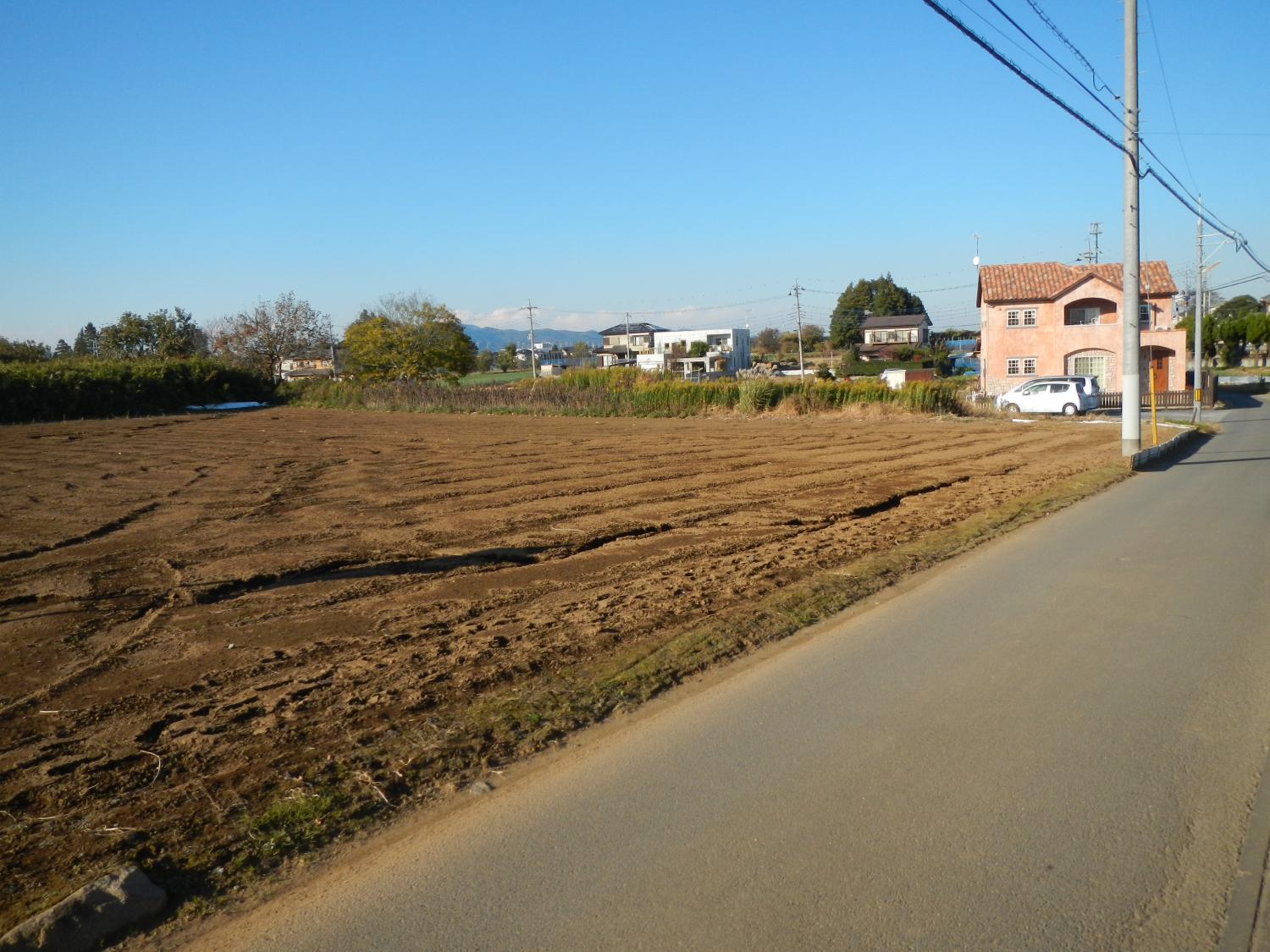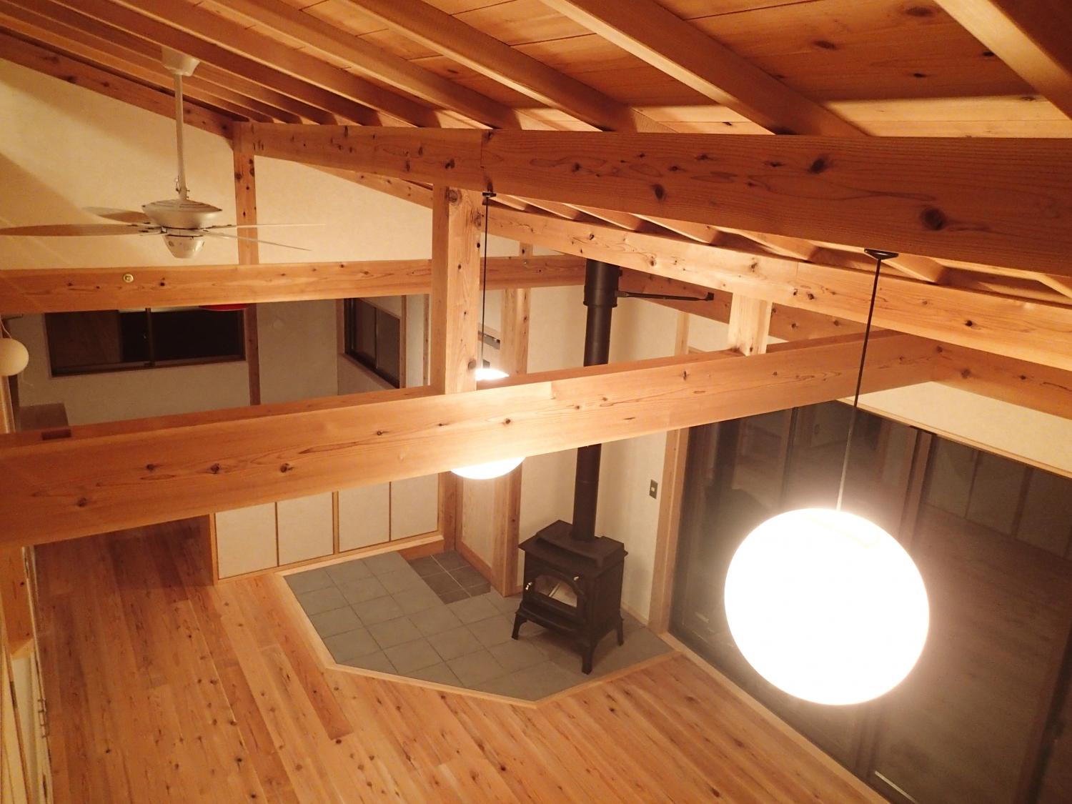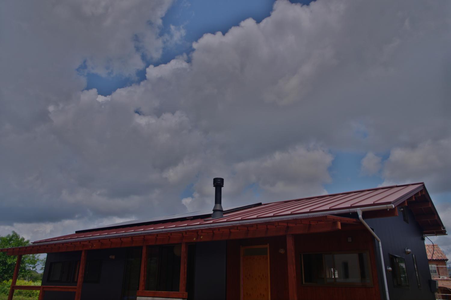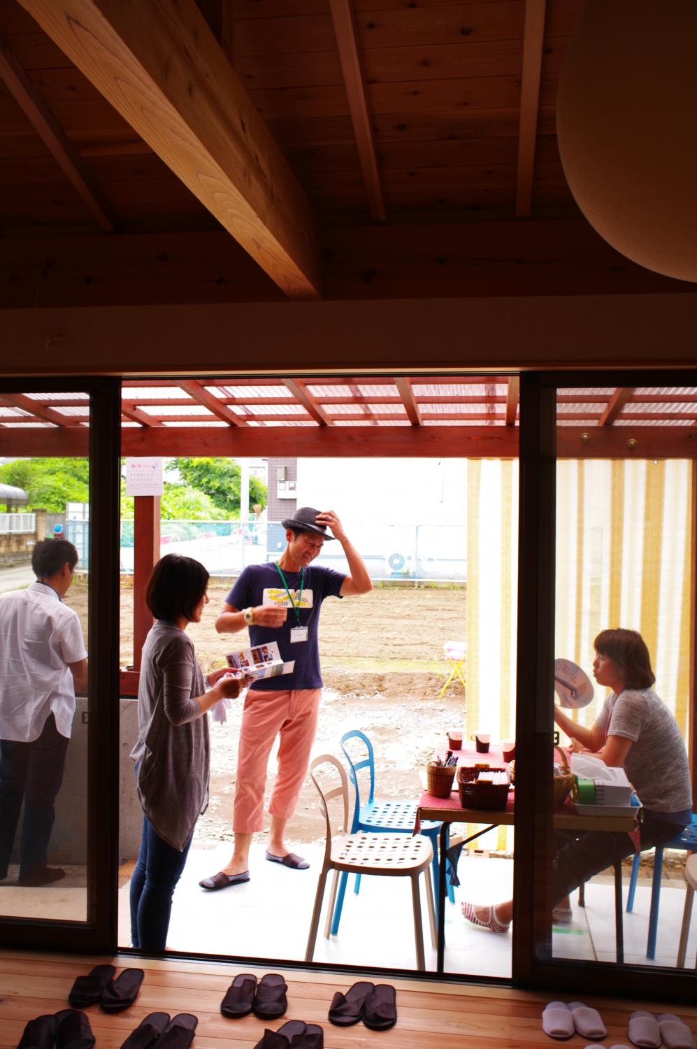 石岡市郊外、周辺に畑や緑が点在している敷地。杉の井の家は敷地を一緒に探すところから始まりました。陽当り良好な敷地にシンプルな切妻屋根、シンプルな動線の平屋の建物を設計しました。全長13mのロフトは大きな収納としてだけでなく、夏には空気の流れをつくる大きな換気装置として働きます。深い庇のテラス、キッチン裏の土間物置などが若いご家族の楽しい生活を、より自由にしてくれます。家の断熱は、冬に薪ストーブ1台で暖かく過ごせるように設計しています。