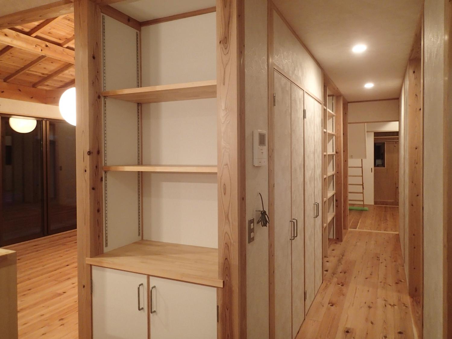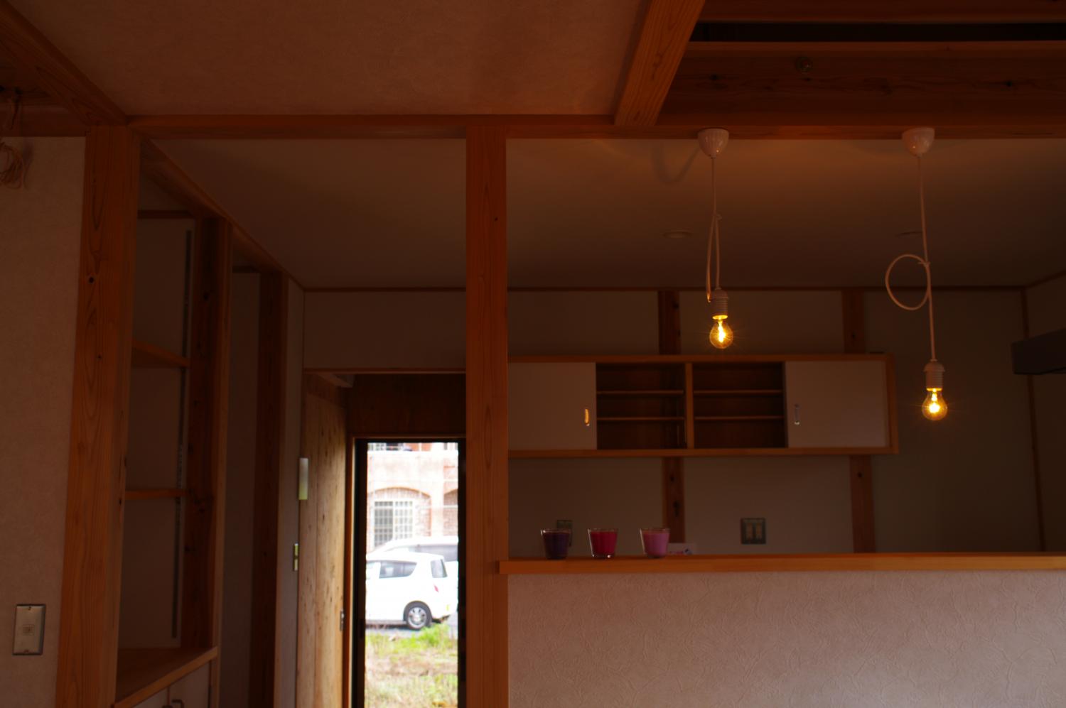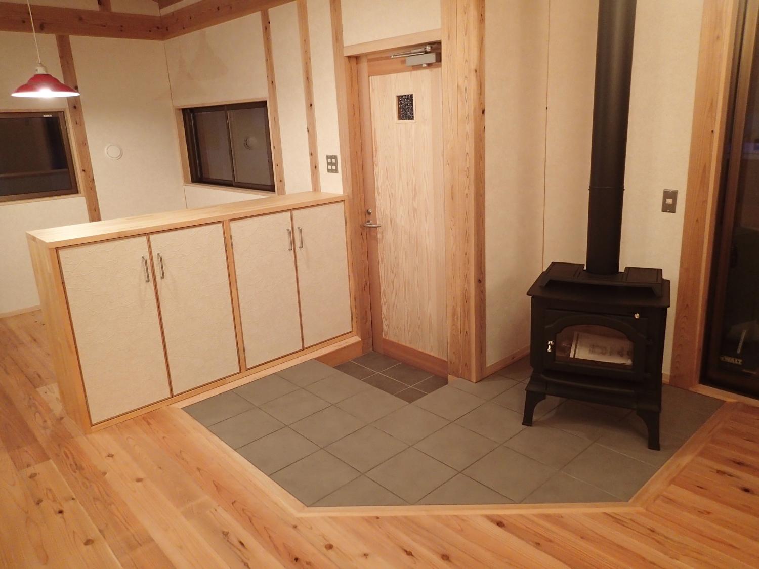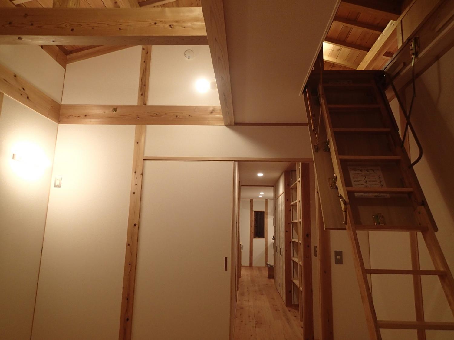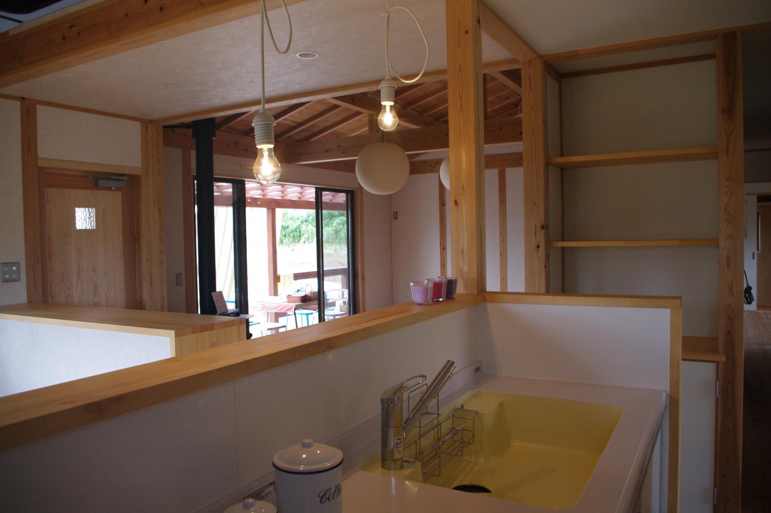 石岡市郊外、周辺に畑や緑が点在している敷地。杉の井の家は敷地を一緒に探すところから始まりました。陽当り良好な敷地にシンプルな切妻屋根、シンプルな動線の平屋の建物を設計しました。全長13mのロフトは大きな収納としてだけでなく、夏には空気の流れをつくる大きな換気装置として働きます。深い庇のテラス、キッチン裏の土間物置などが若いご家族の楽しい生活を、より自由にしてくれます。家の断熱は、冬に薪ストーブ1台で暖かく過ごせるように設計しています。
