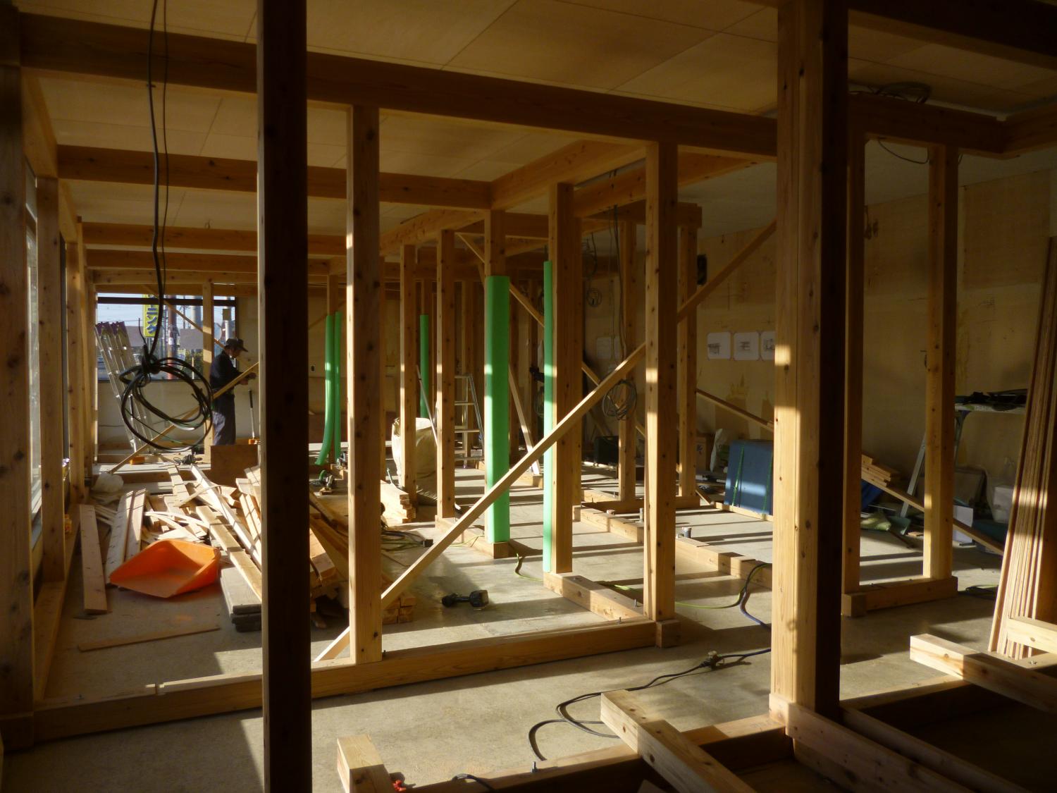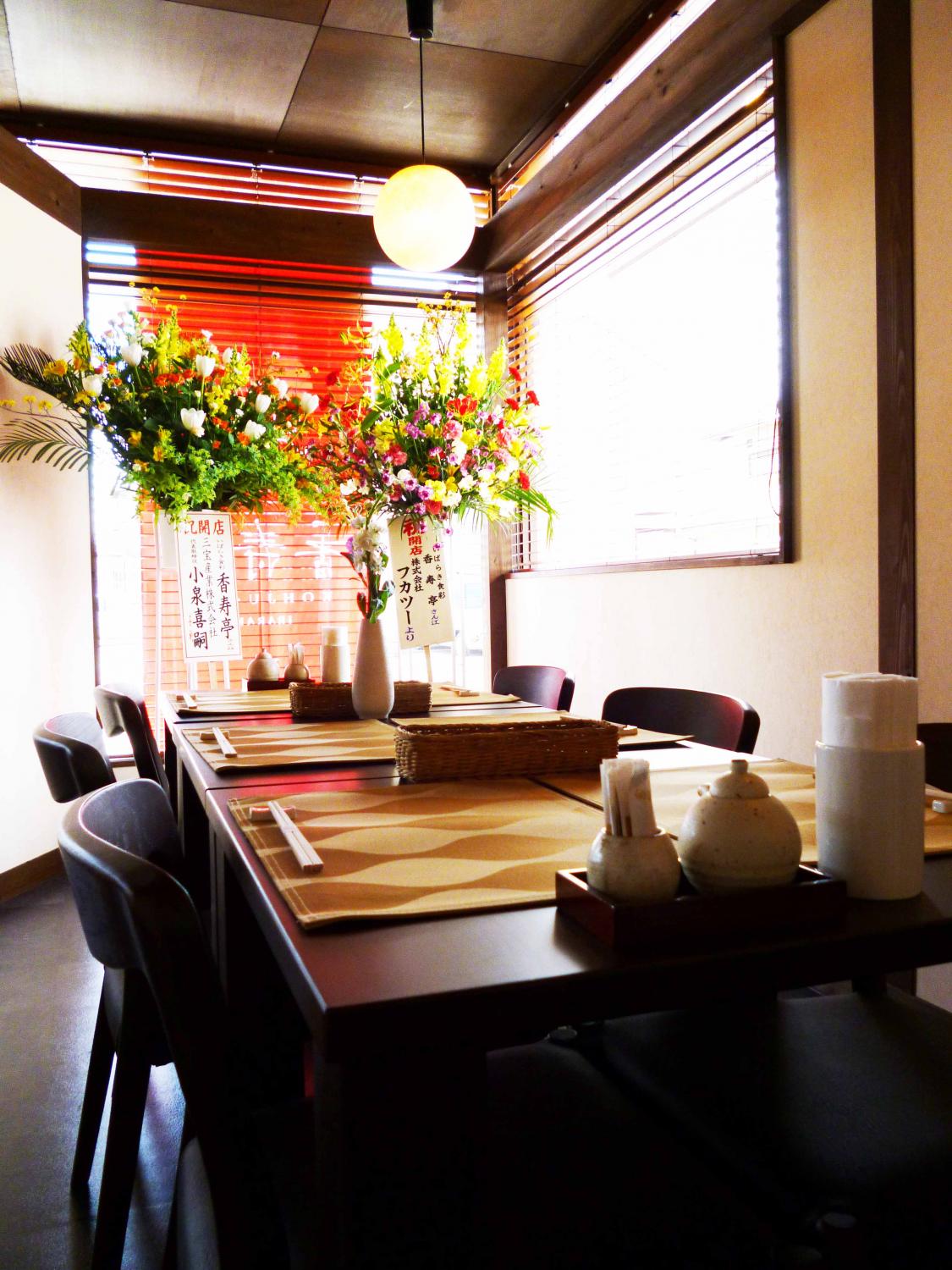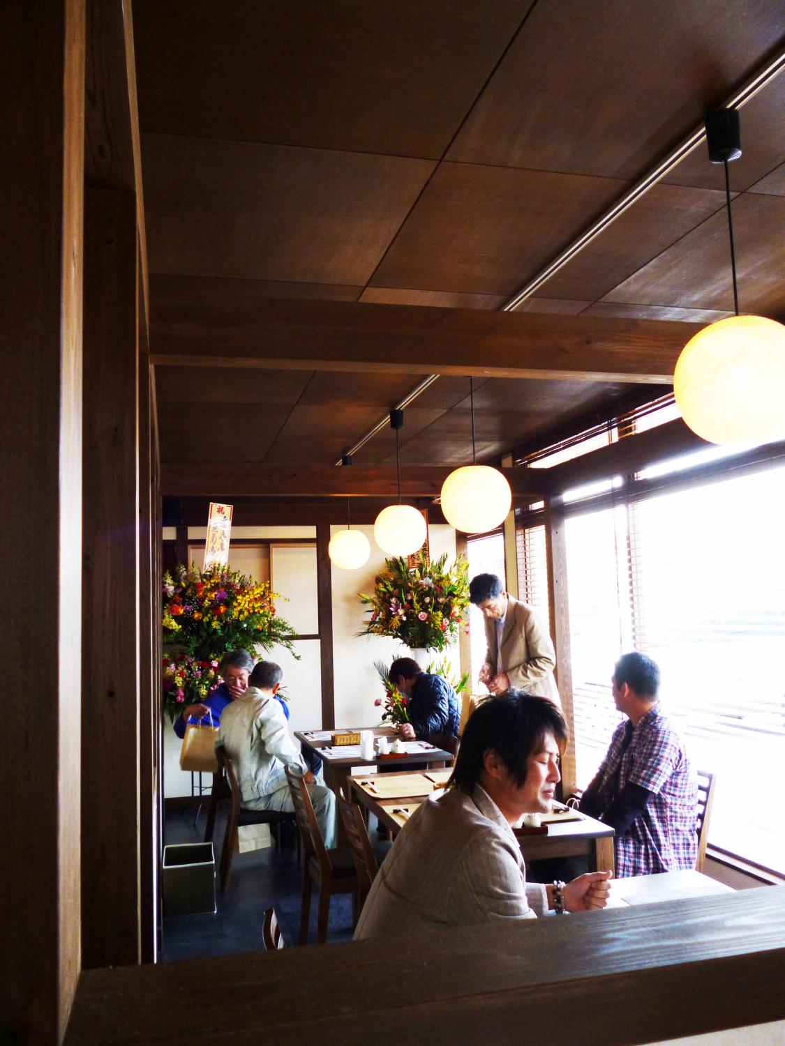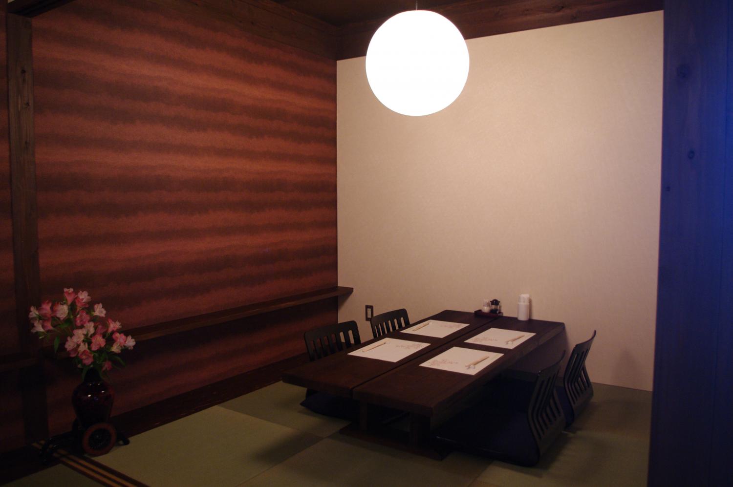 お客様の人数に合わせて仕切ったり広げたりできるフレキシブルな構造を杉材をつかって作り、